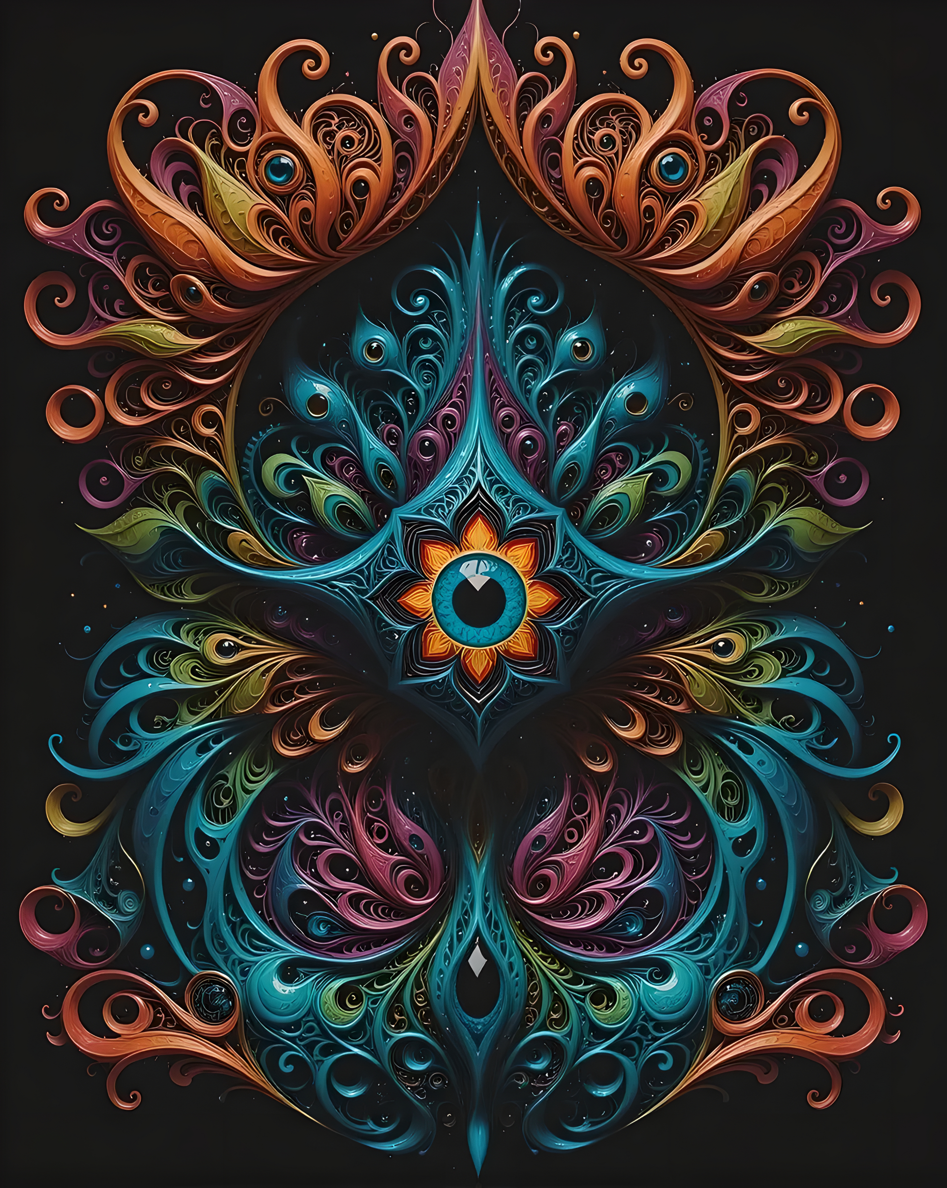 Unlock your inner power with Mystic Vision, a mesmerizing design that fuses color, symmetry, and cosmic flow. Centered around a radiant all-seeing eye, this artwork bursts with swirling patterns and vibrant hues of turquoise, violet, orange, and gold — a perfect symbol of awareness and transformation. Ideal for t-shirts, hoodies, mugs, or accessories, it turns your everyday look into a piece of wearable art that speaks of mystery, depth, and self-expression.