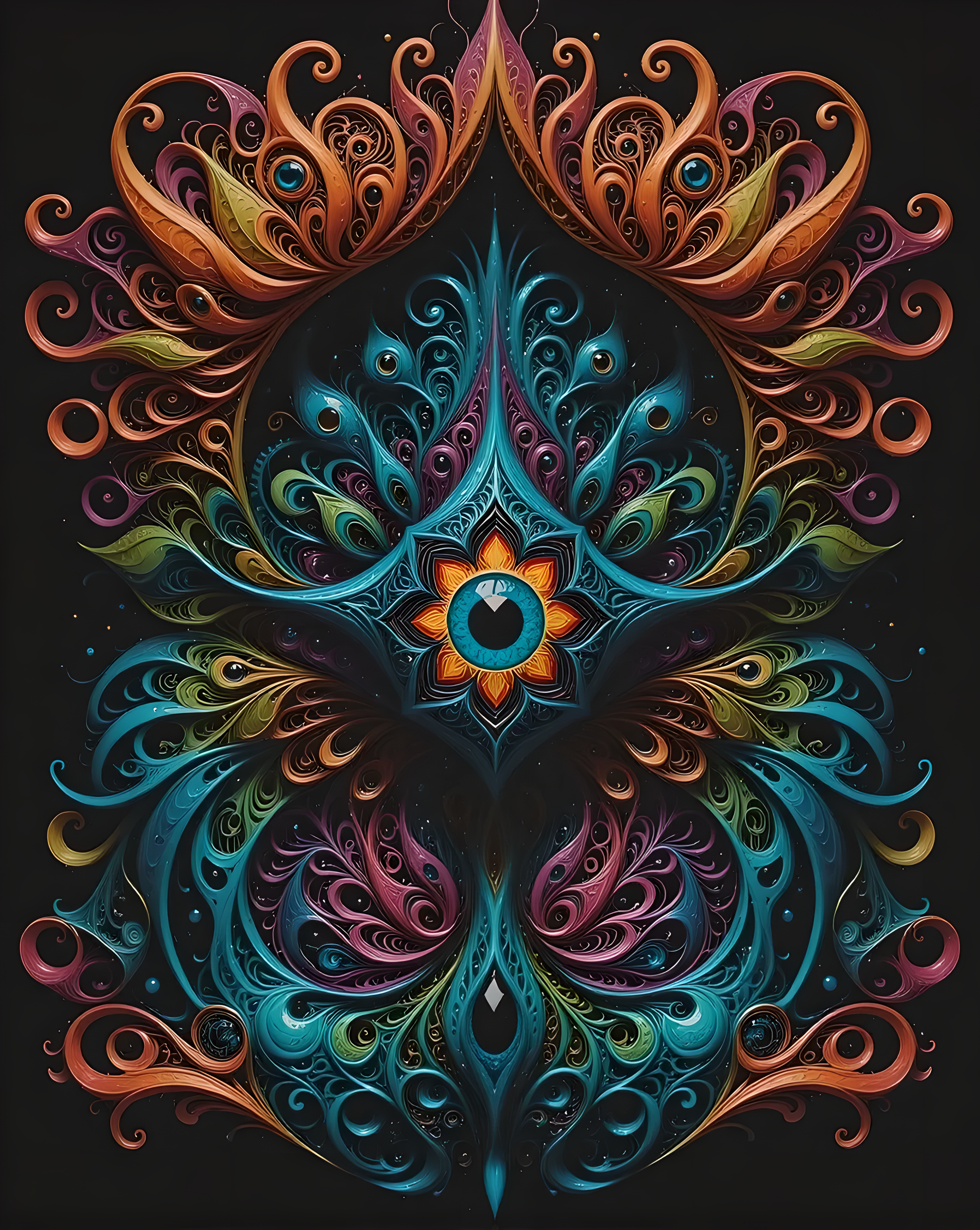 Unlock your inner power with Mystic Vision, a mesmerizing design that fuses color, symmetry, and cosmic flow. Centered around a radiant all-seeing eye, this artwork bursts with swirling patterns and vibrant hues of turquoise, violet, orange, and gold — a perfect symbol of awareness and transformation. Ideal for t-shirts, hoodies, mugs, or accessories, it turns your everyday look into a piece of wearable art that speaks of mystery, depth, and self-expression.